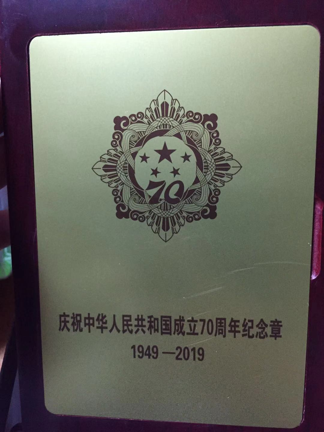 70周年紀(jì)念章上,金色的五星熠熠生輝,四顆小星星緊緊圍繞著中間的大星,祥云齊聚,光芒耀目。歷經(jīng)歲月滄桑的朱風(fēng)和,是歷史的見證者與參與者,為國家和民族解放事業(yè)作出了貢獻(xiàn)。