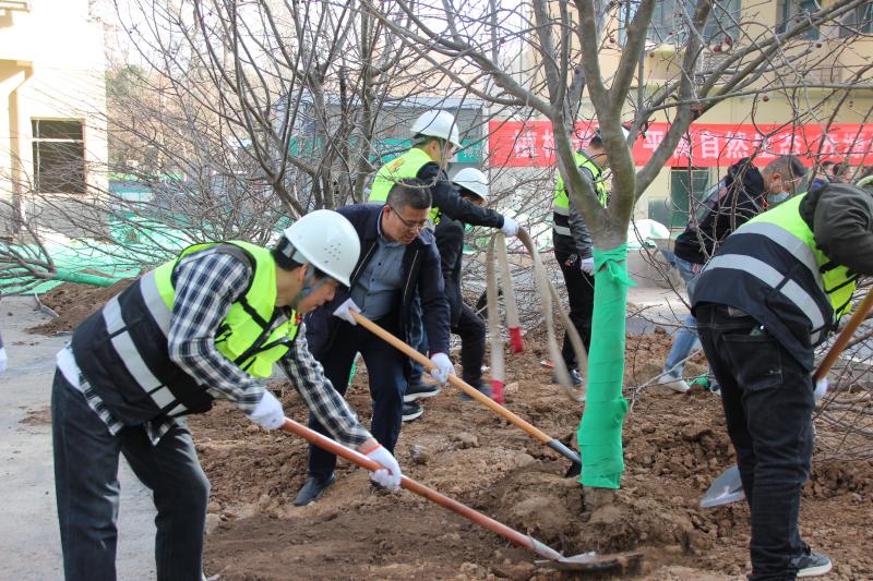 3月9日上午10點,在我公司黃金嘉境項目部現場開展本次植樹活動,西安大興新區開發建設管委會、西安聞達置業有限公司(建設單位)、西安市住總建設集團有限公司(總包單位)、陜西科興源工程管理有限公司(監理單位)領導帶隊,共同開展“植綠護綠·和諧共生”為主題的志愿植樹活動,參與植樹活動的志愿者共五十余人,總計植樹近30棵。