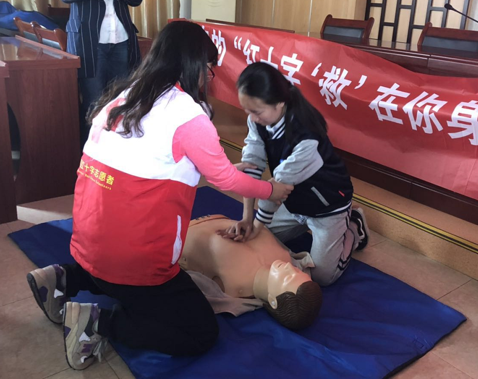 我國每年因心跳呼吸驟停會奪走將近55W人的生命,相當于每天死亡1500人,平均下來每分鐘就有一人因為心跳驟停而離開人世。針對這種突發事件,王老師為我們講解了如何做心肺復舒。首先我們應該在保證自我安全的情況下進行。輕拍傷員雙肩,在兩側耳朵重喚;檢查傷員的口腔內是否有異物,如果有清除干凈;開始心肺復舒,每30次的按壓需配合2次人工呼吸,直至昏迷人員清醒或醫護人員到場。授課中,老師重點強調按壓的手法、人工呼吸的技巧,并讓大家現場練習。