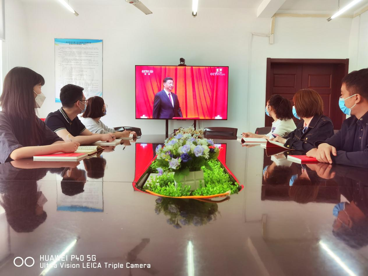 5月10日早晨10點,公司全體團員、青年員工在三樓會議室收看慶祝中國共產主義青年團成立100周年大會,團委組織委員翟杰主持會議。