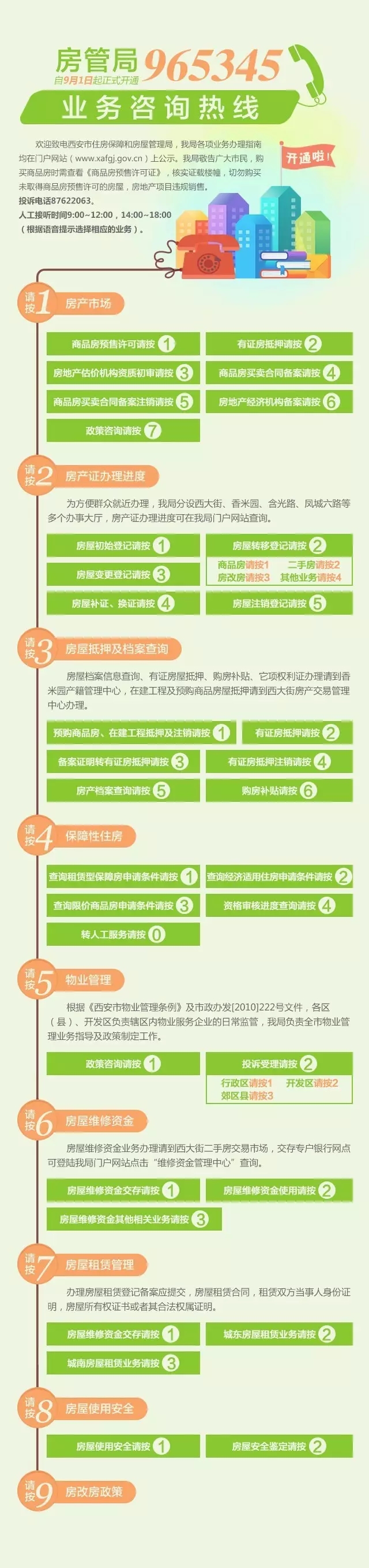 我局自9月1日起正式開通“965345”服務熱線,為市民提供語音咨詢、政策和業務咨詢、舉報投訴等信息咨詢服務,人工接聽時間為9:00—12:00,14:00—18:00。